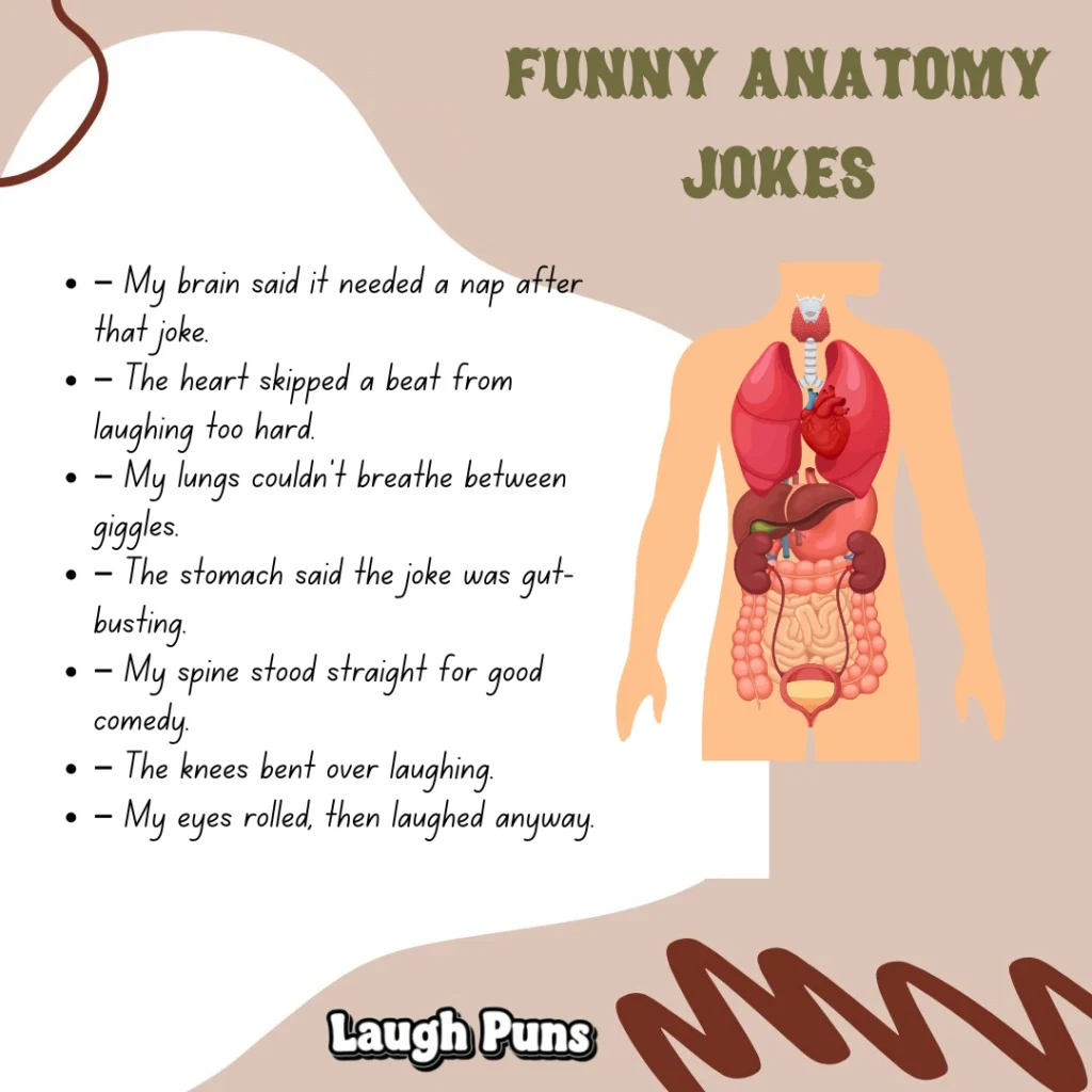 Anatomy jokes blend science, curiosity, and witty wordplay into light, clever humor. They turn body parts and biology terms into fun, memorable punchlines that feel both smart and entertaining.