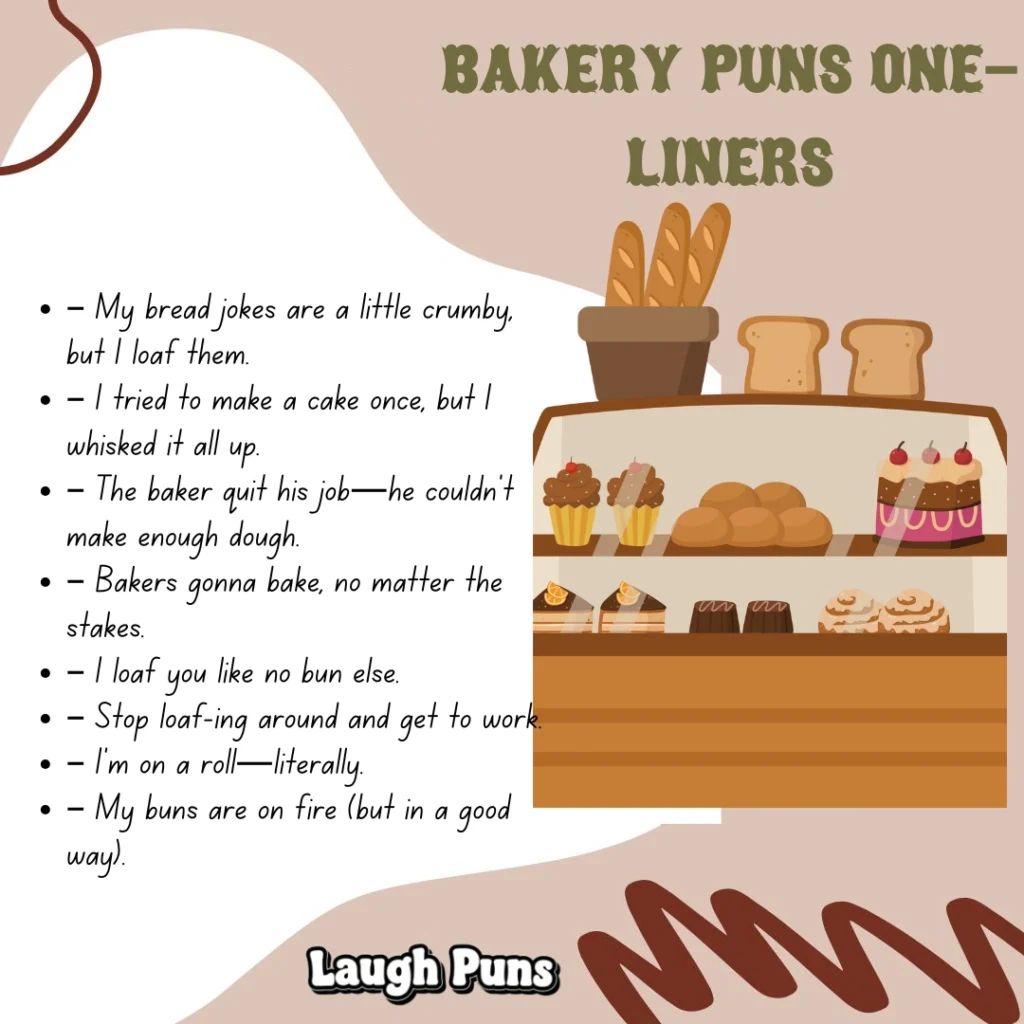 Bakeries smell like comfort—yeast, sugar, and quiet happiness rising in the air. There’s magic in the mix. Bakery puns bake that joy into words—soft, warm humor that feels homemade.
