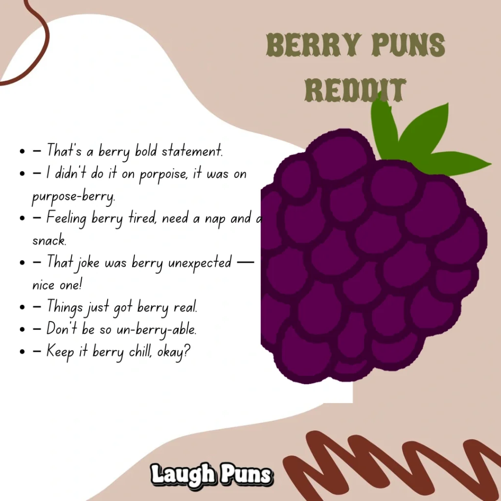 Berry puns are short, sweet, and full of good energy. They leave you smiling, maybe a little sticky, but always satisfied. Proof that the smallest things can deliver the biggest flavor of fun.