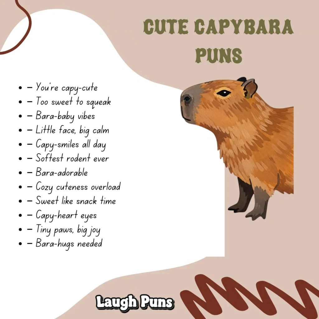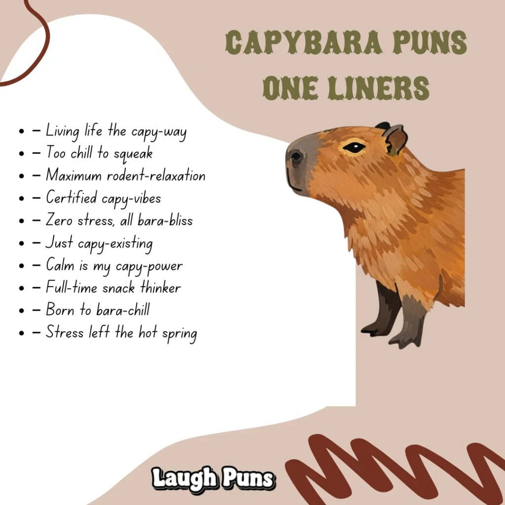 Capybara puns prove that even the most peaceful creatures can inspire big smiles. With their mellow tone and friendly charm, they offer easy laughs that feel just as soothing as the animals themselves.