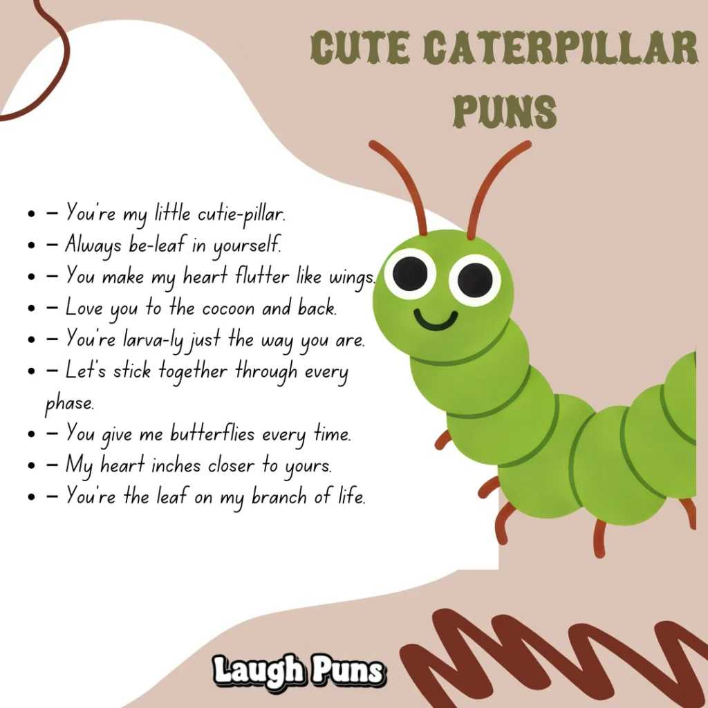 Caterpillar puns may start small, but they transform beautifully. Soft, sweet, and full of promise, they remind us that even the slowest laughs can one day soar.