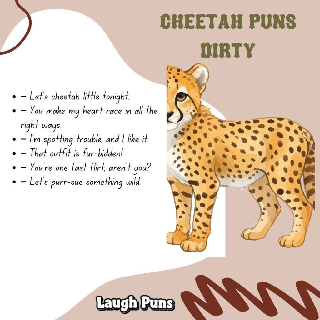Cheetah puns run fast and hit sharp. They’re slick, witty, and always ahead of the joke—proof that some laughs are built for speed.