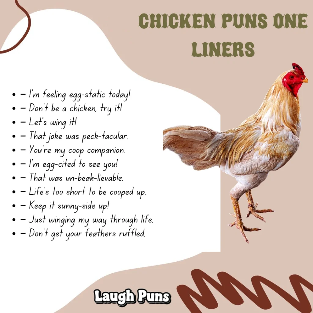 Chicken puns hatch laughter wherever they go. They’re silly, spirited, and far too fun to keep cooped up. Proof that good humor doesn’t need to fly—it just needs to flap with confidence.