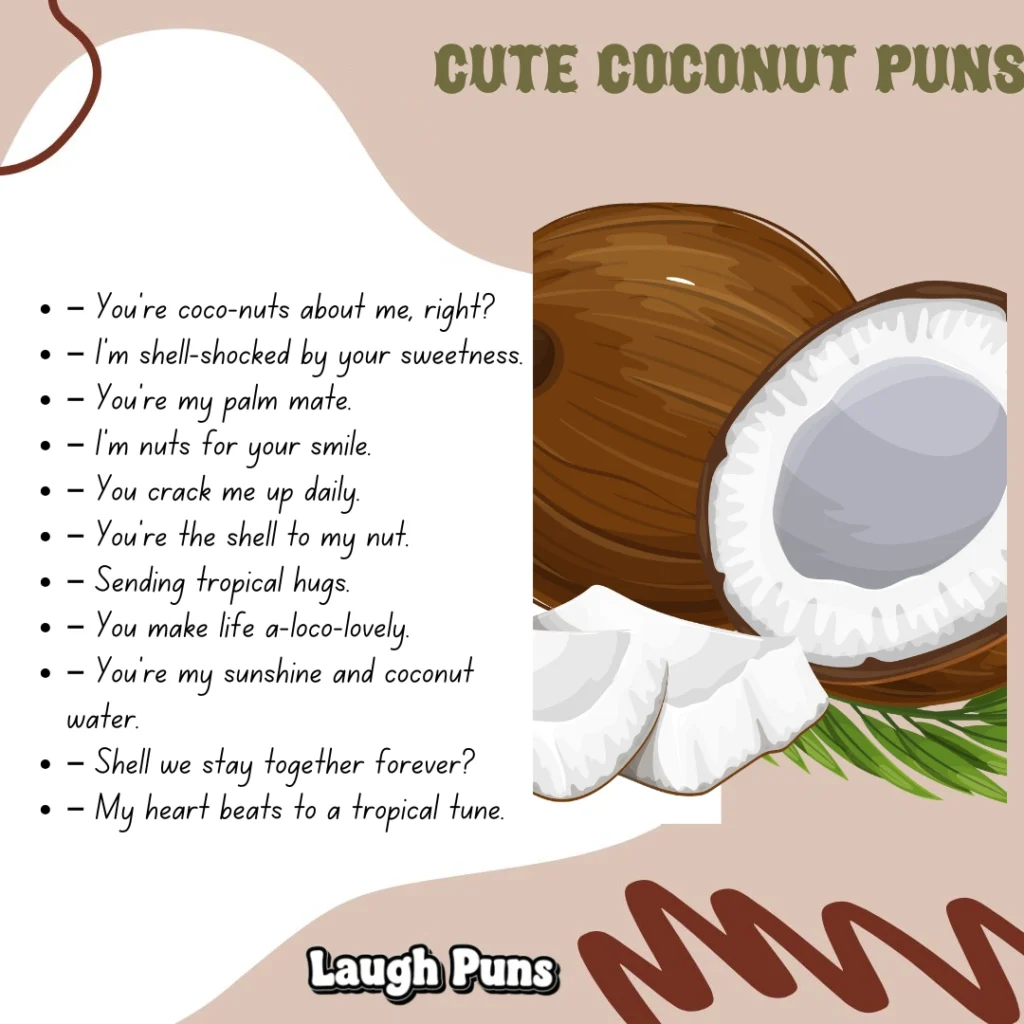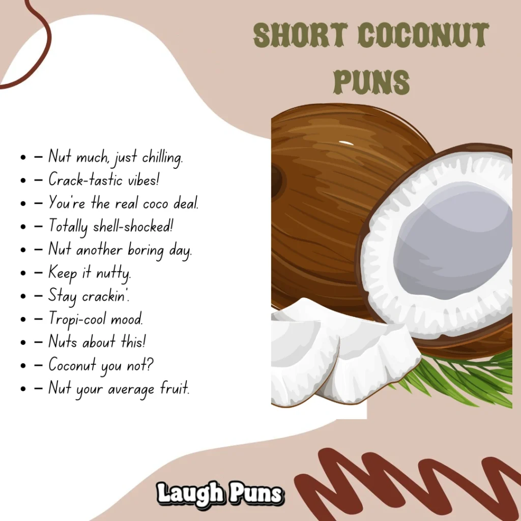 Coconuts are nature’s little mysteries—tough on the outside, sweet on the inside, and never in a hurry to reveal their secrets. They’re the chill ambassadors of island life. Coconut puns crack open that same carefree humor—smooth, sunny, and a little nutty in all the right ways.