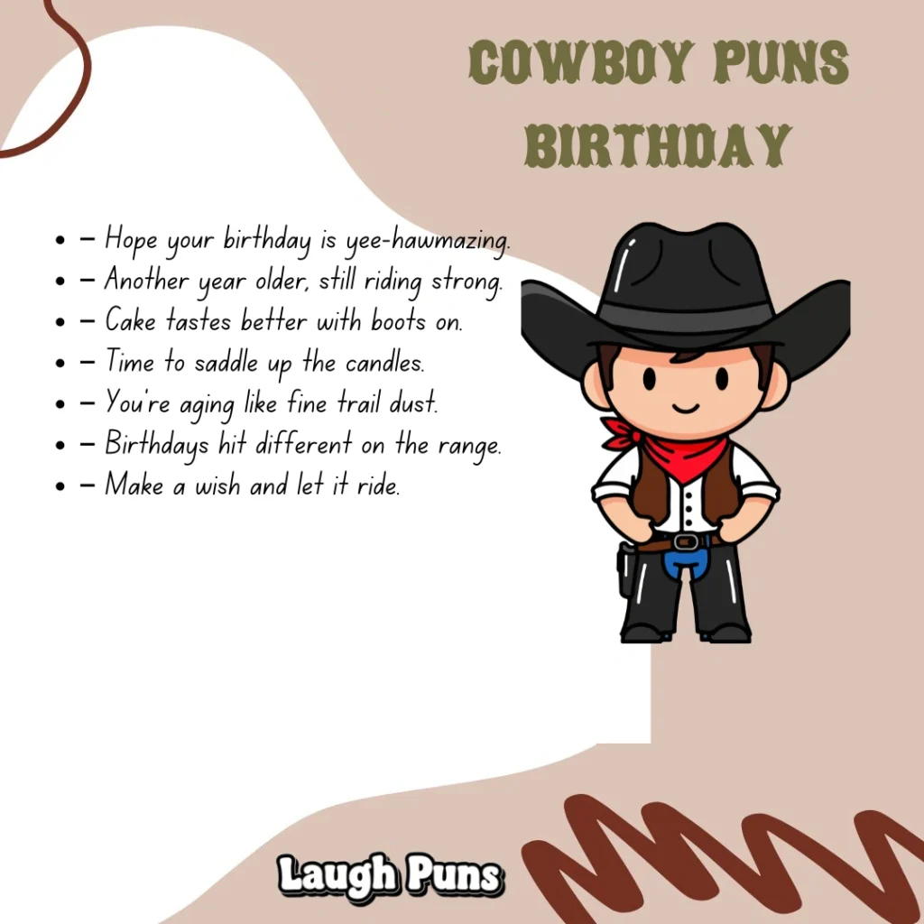 Cowboy puns capture the adventurous spirit of the Wild West with bold, playful wordplay. These jokes bring boots, hats, and rodeo energy into fun lines that feel lively and full of character.