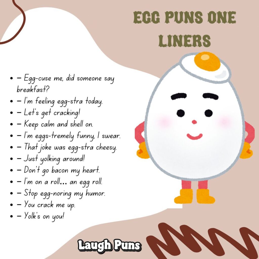 Egg puns never overthink it—they just land perfectly. Light, wholesome, and a little messy, they remind us that laughter is best when it’s fresh from the shell.