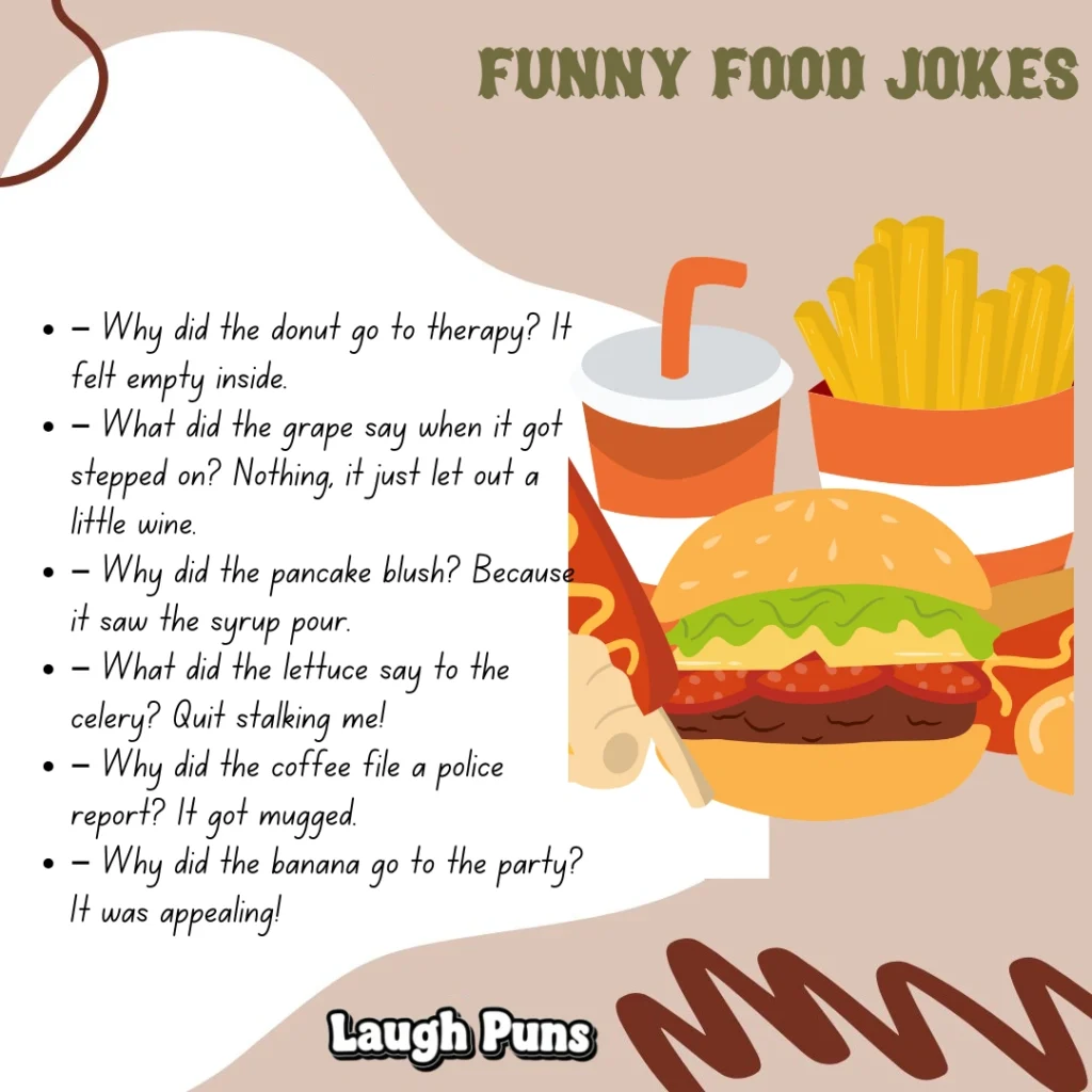 Food jokes prove that comedy, like cooking, is all about good taste. They’re quick, flavorful, and guaranteed to leave you full of smiles.