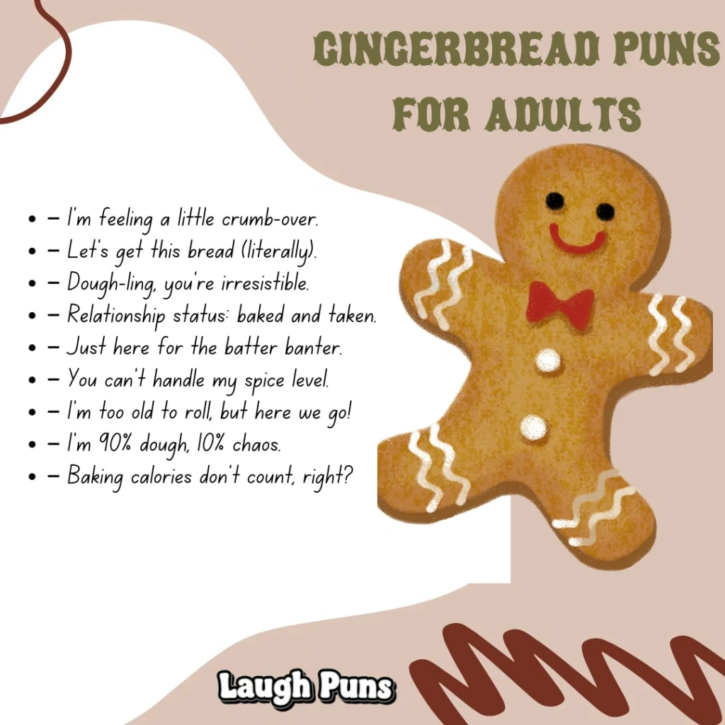 A little cheeky, a little spicy — these naughty gingerbread puns are adults-only but still sugar-sweet.