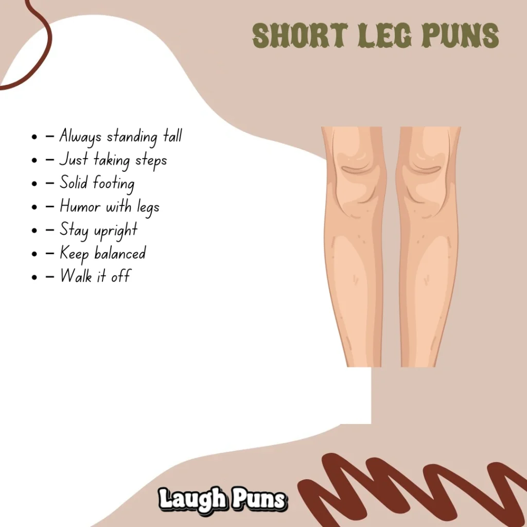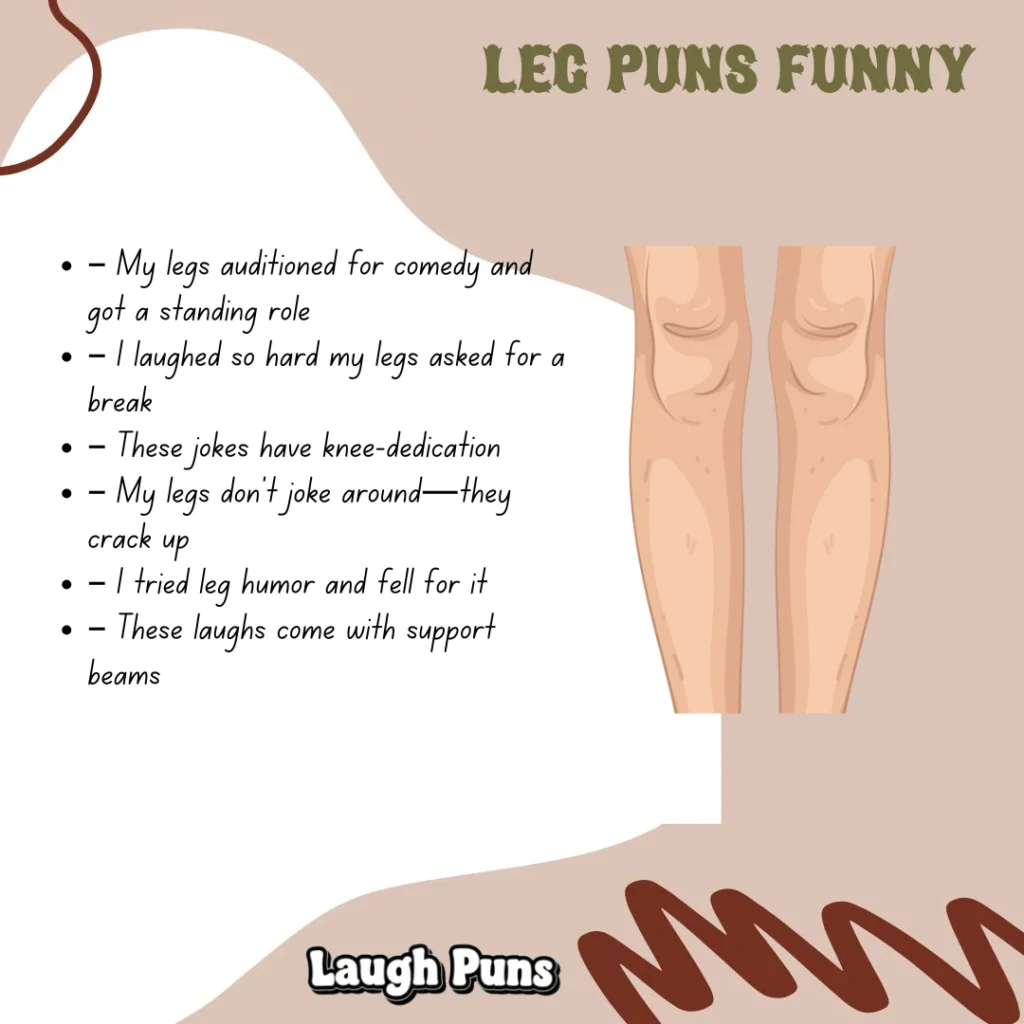 Leg puns show that lighthearted humor can stand tall. With their playful tone and easy rhythm, they support a steady stream of smiles.