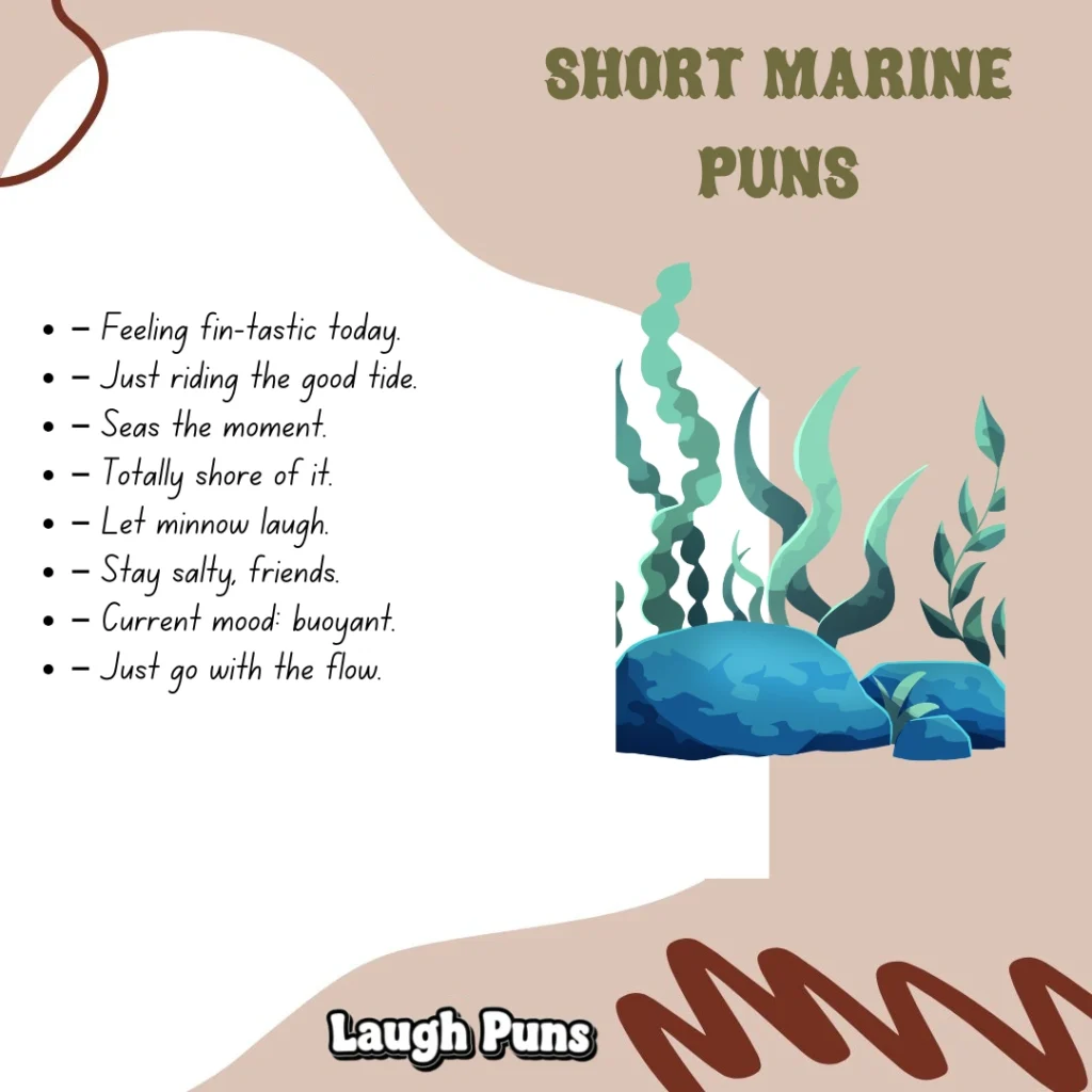 Marine puns show how easy it is to bring a splash of joy to any moment. With their gentle tone and coastal character, they carry smiles ashore with every line.