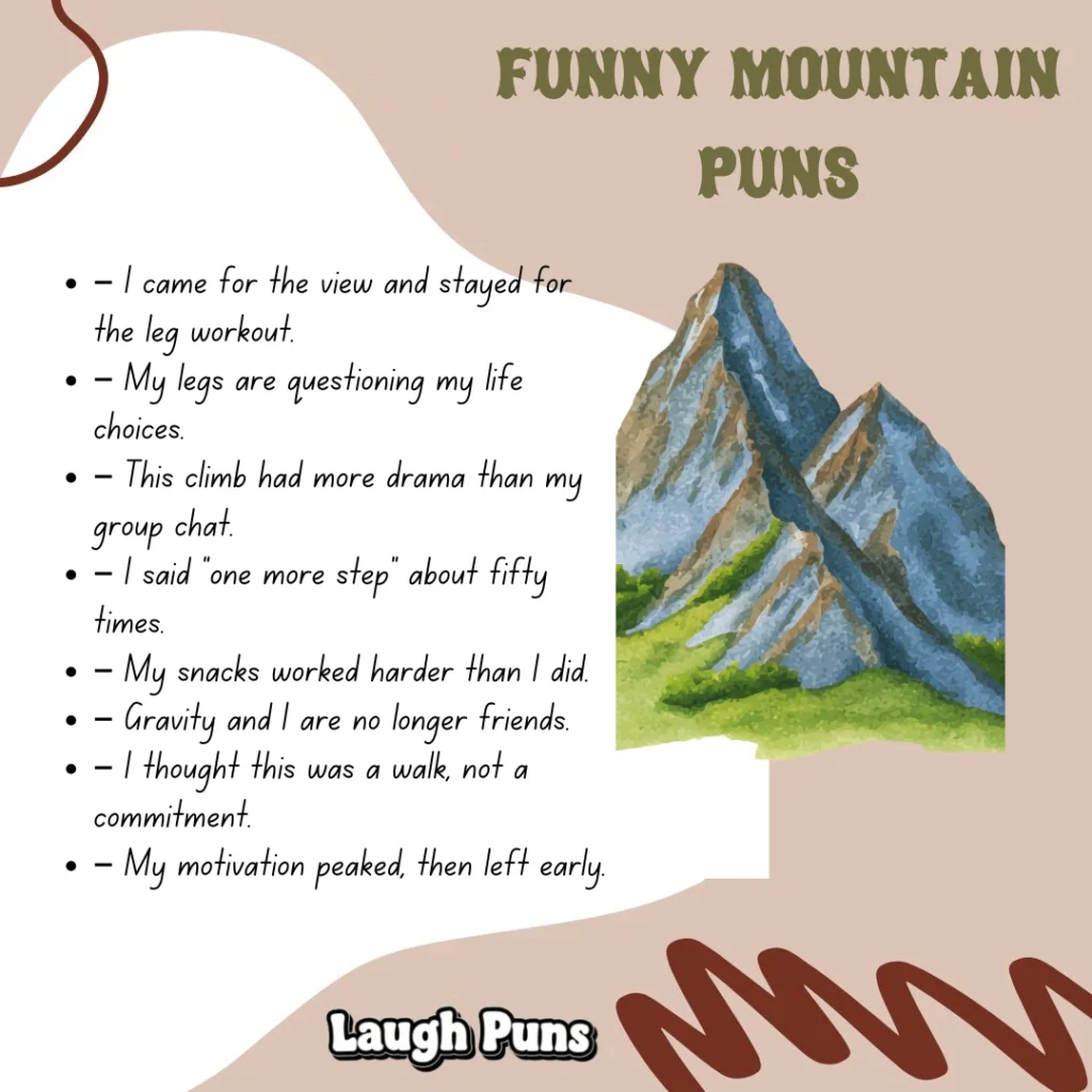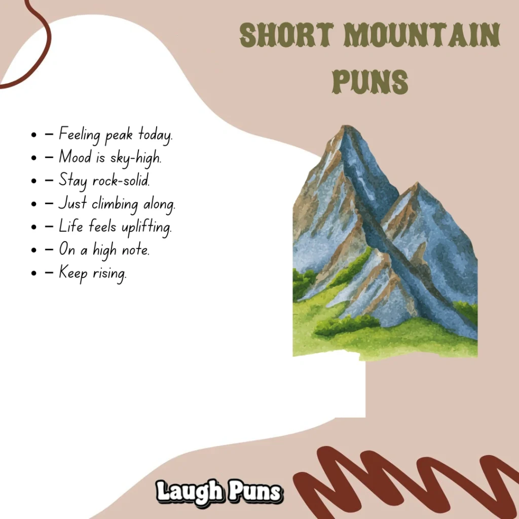 Mountain puns remind us that laughter can climb just as high as our goals. With their strong, scenic charm, they bring a breath of fresh humor to the day.