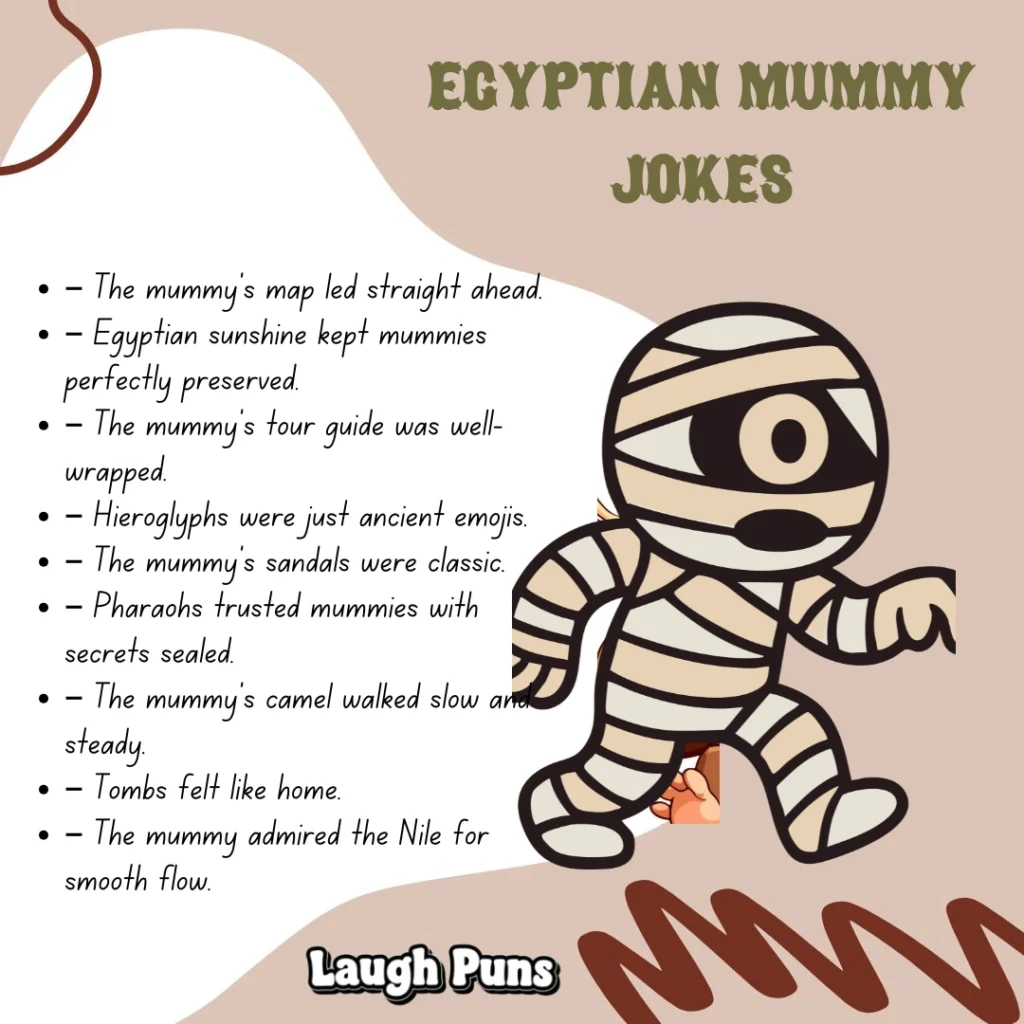 - – The mummy’s jokes are ancient gold.
