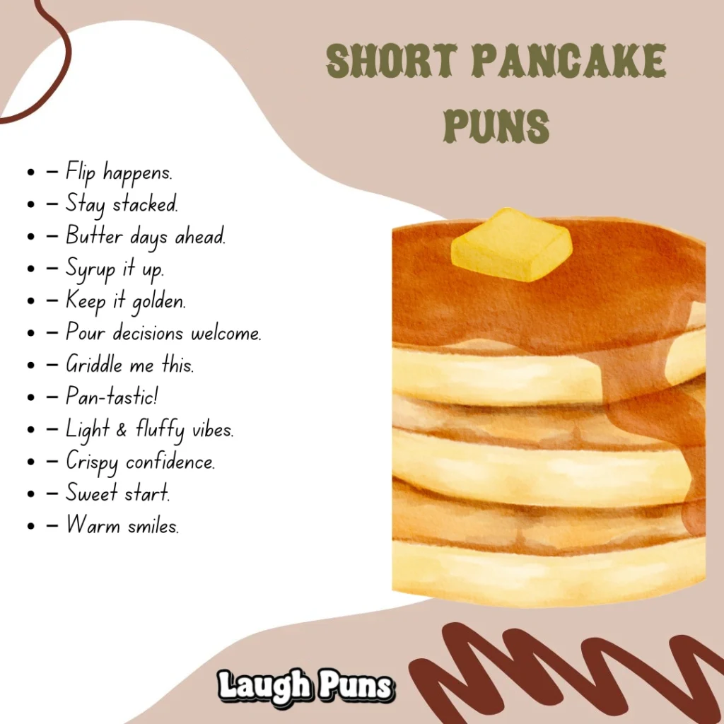 Pancake puns show that a little sweetness goes a long way. With their cozy charm, they spread smiles as easily as syrup on a plate.