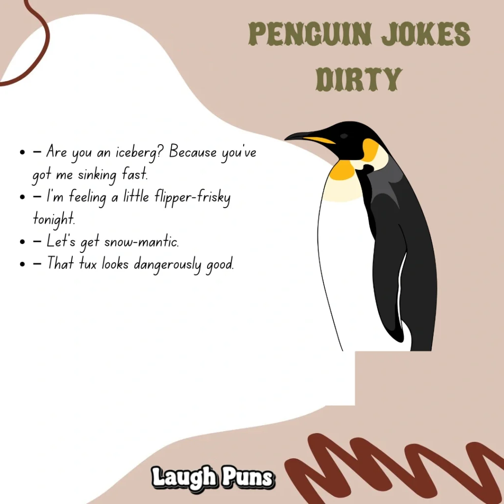 A little cheeky, a little spicy — these penguin puns are all in good fun. Frosty flirtation guaranteed!