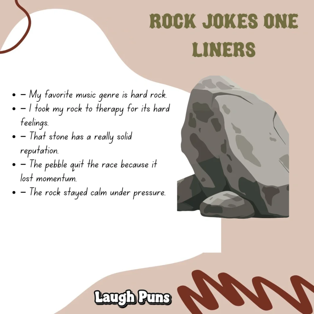 Rocks may seem solid and serious, but they’ve got a funny side too. Rock jokes crack open that tough exterior, revealing humor that’s natural, clever, and hard to take for granite.