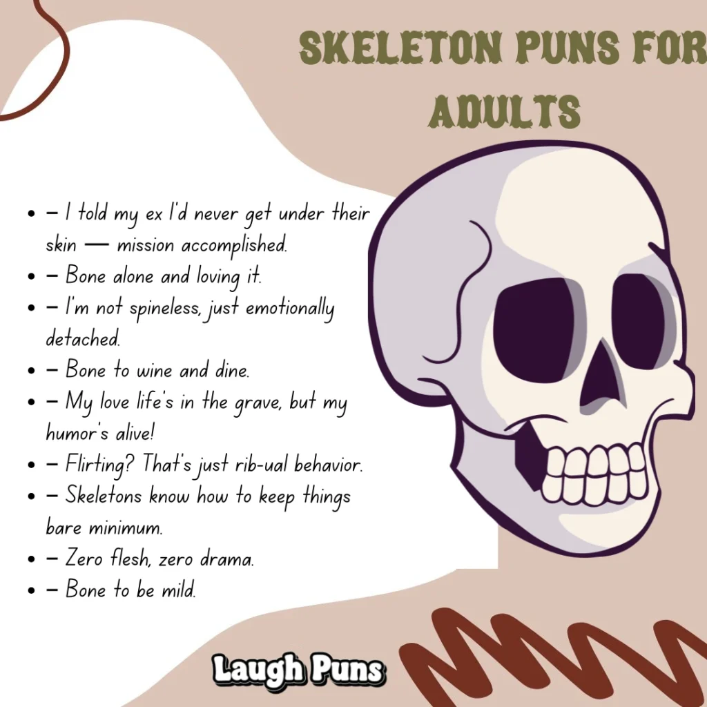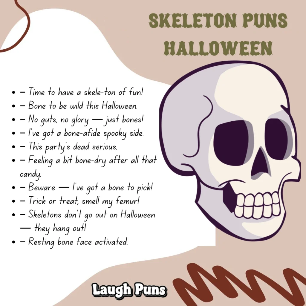 Nothing’s cuter than bones with personality! These puns prove skeletons can be both spooky and adorable.