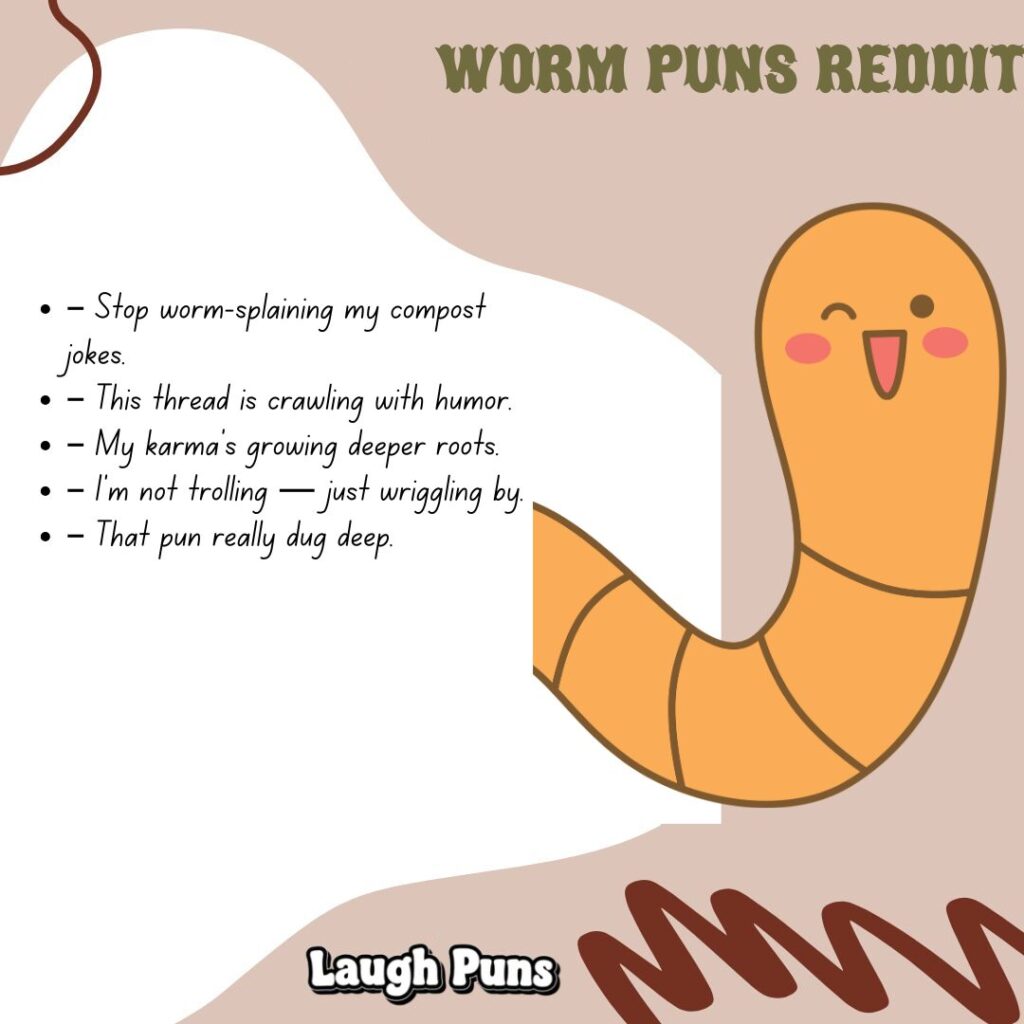 Worm puns squirm their way into your heart—harmless, clever, and full of underground humor. They may not have legs, but they’ve definitely got wit.